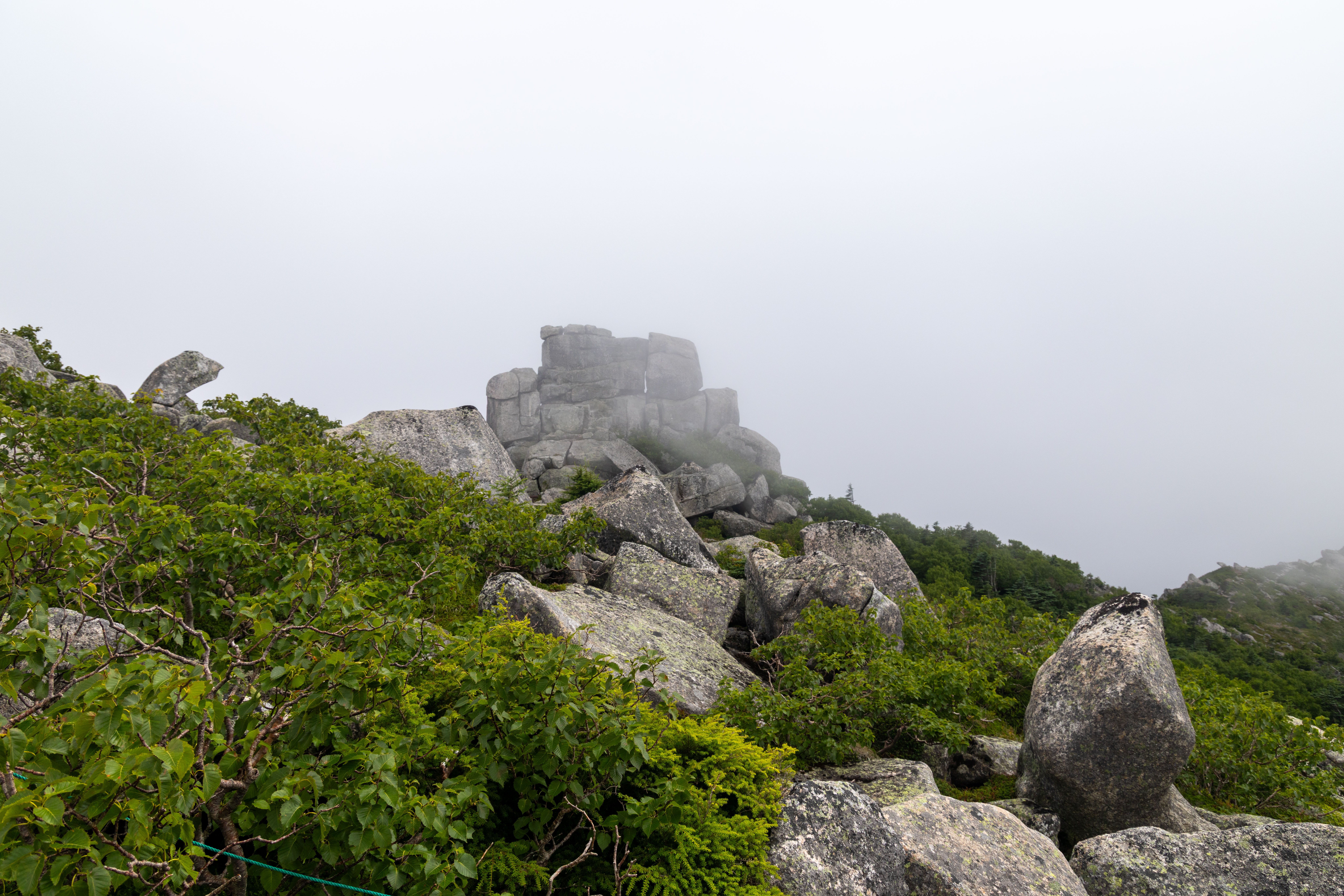 望遠で見ると岩が積み重なっているのがよく分かります。