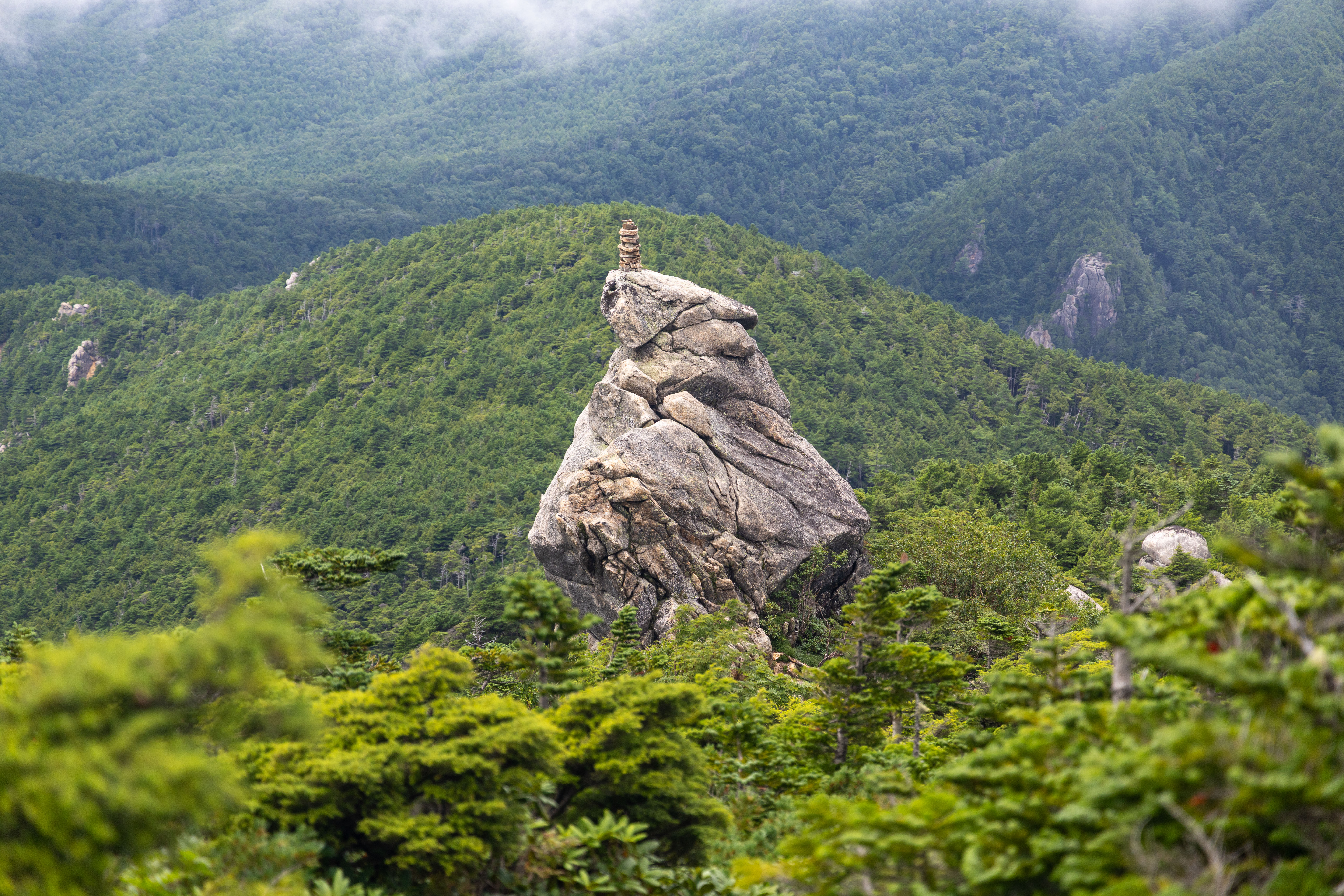 望遠で見ると岩が積み重なっているのがよく分かります。