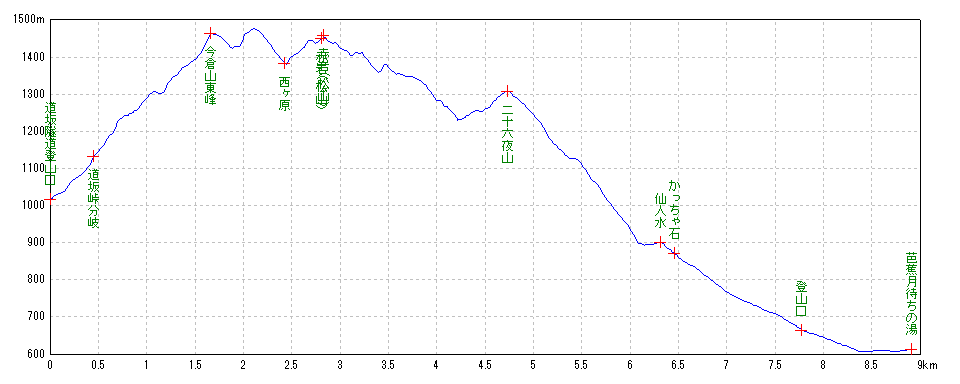 | 道坂峠分岐 | 10:10:09 | 0.48km | 1133m | ||