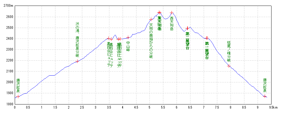 | 唐沢鉱泉 | 12:28:50 | 9.68km | 1872m | ||