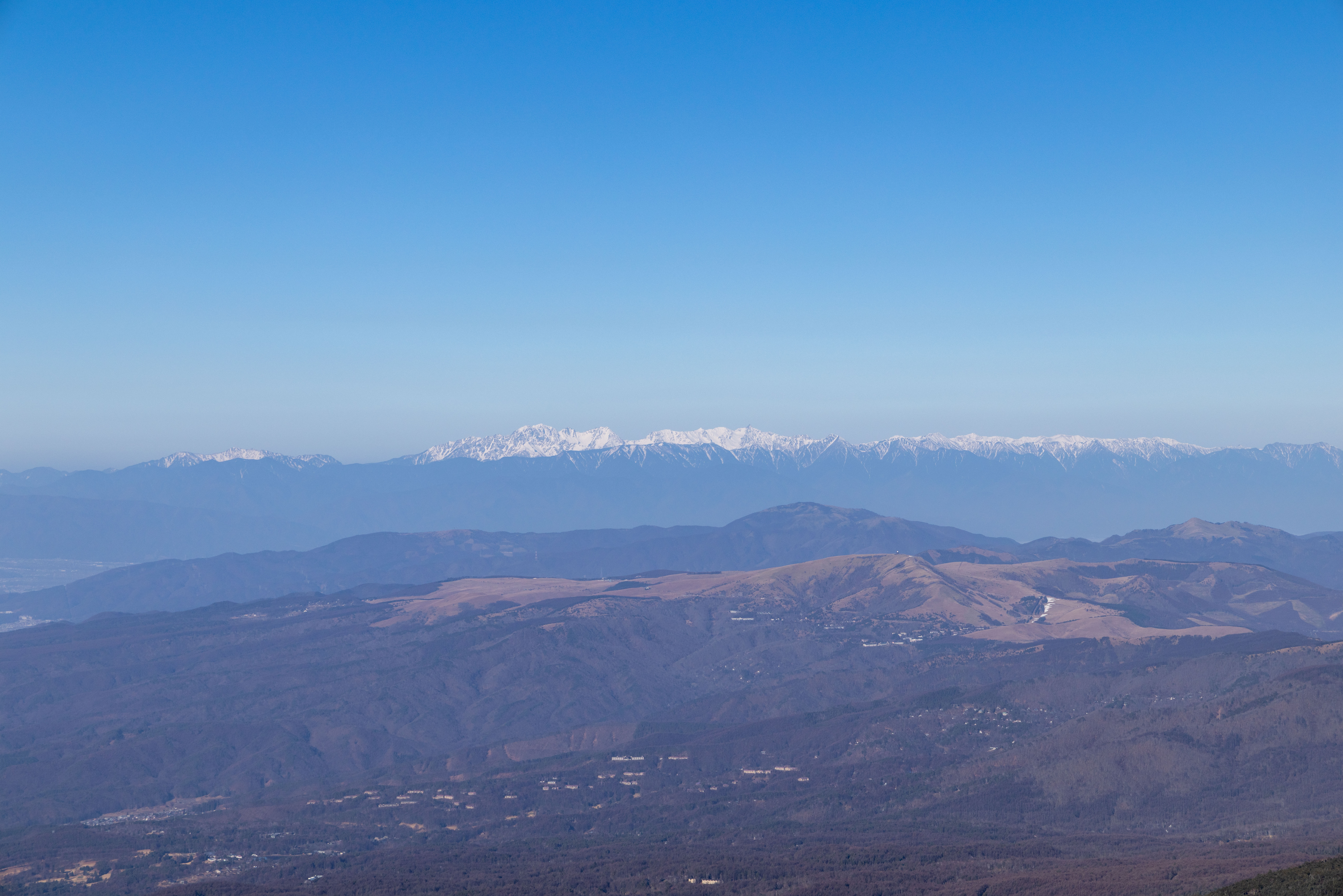 かなり低くなりましたが、南アルプス、中央アルプス、蓼科山、北アルプスもよく見えます。