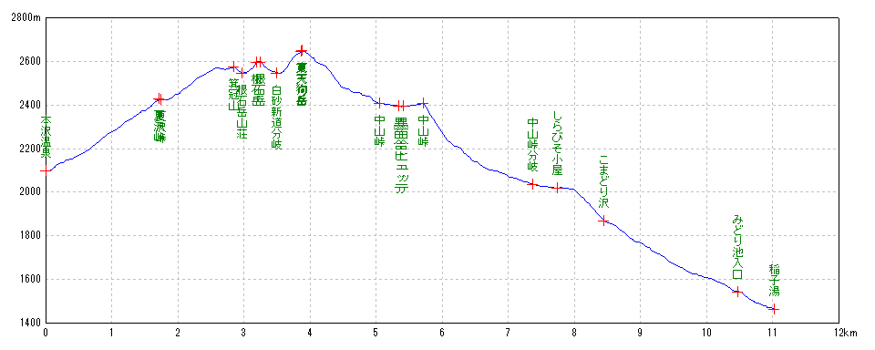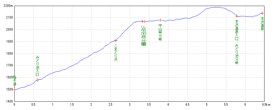 本沢温泉入口、みどり池分岐14:44:515.98km 2113m