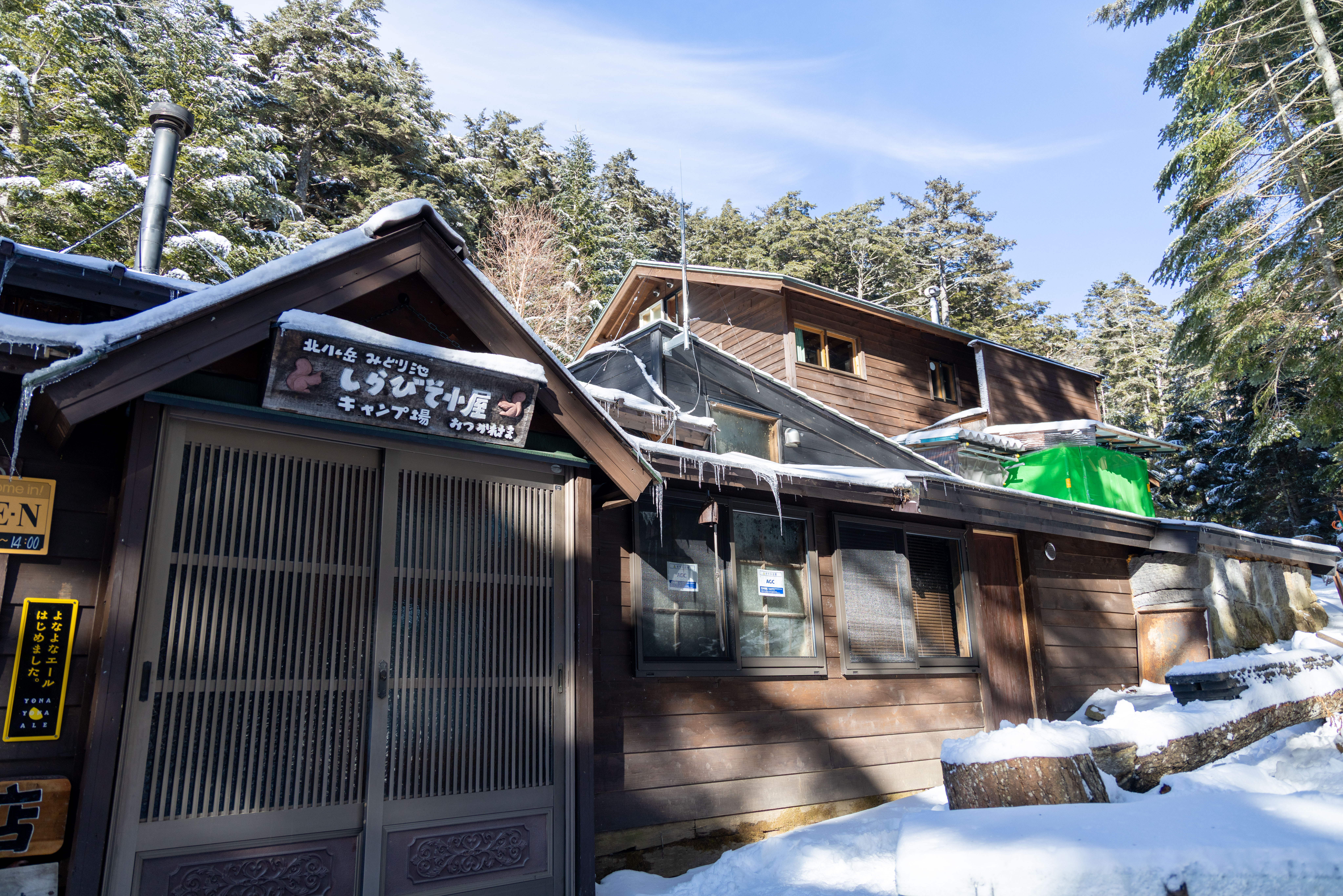 いつもは吹雪いていて、根石岳山荘を見るのは初めてかもしれません。