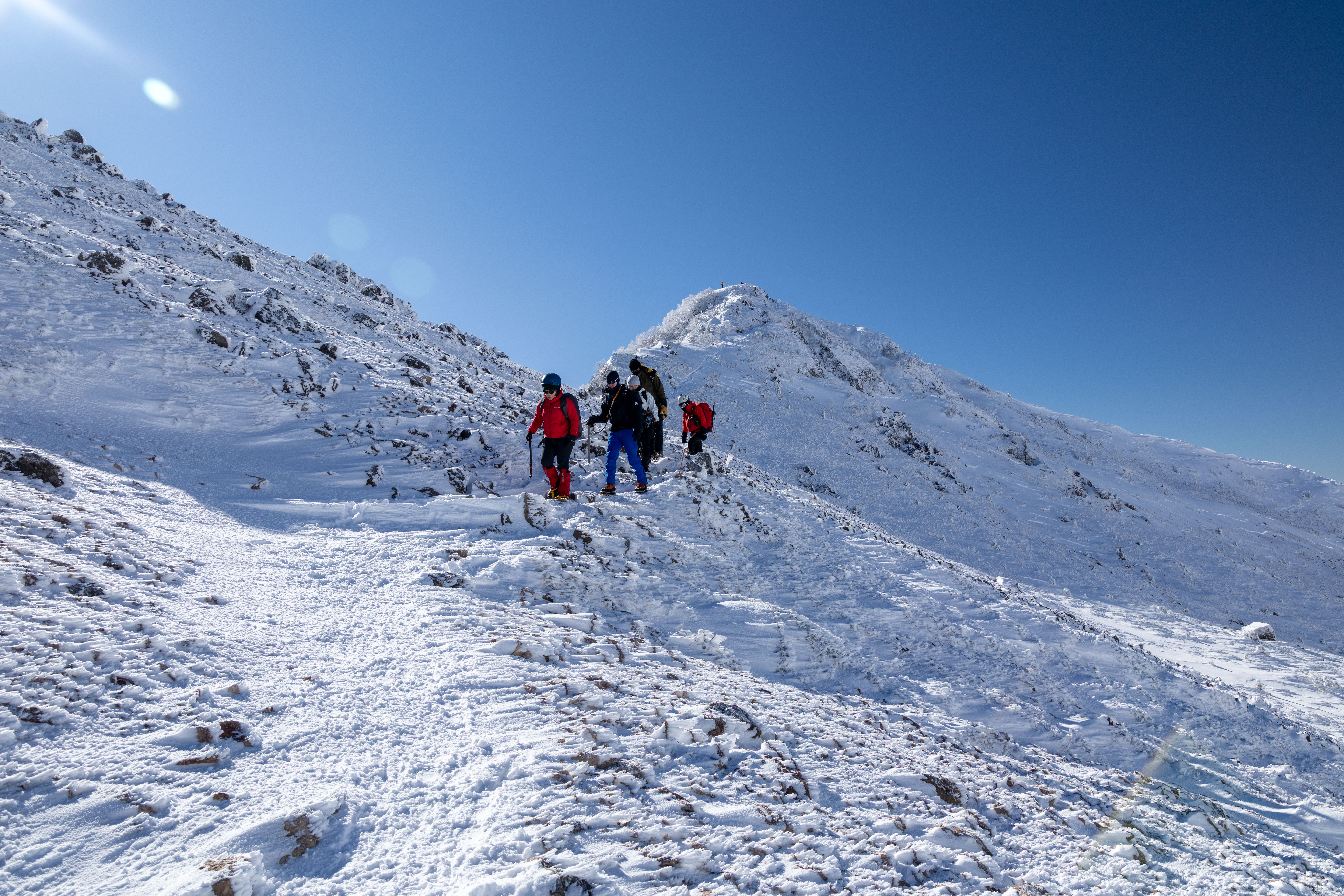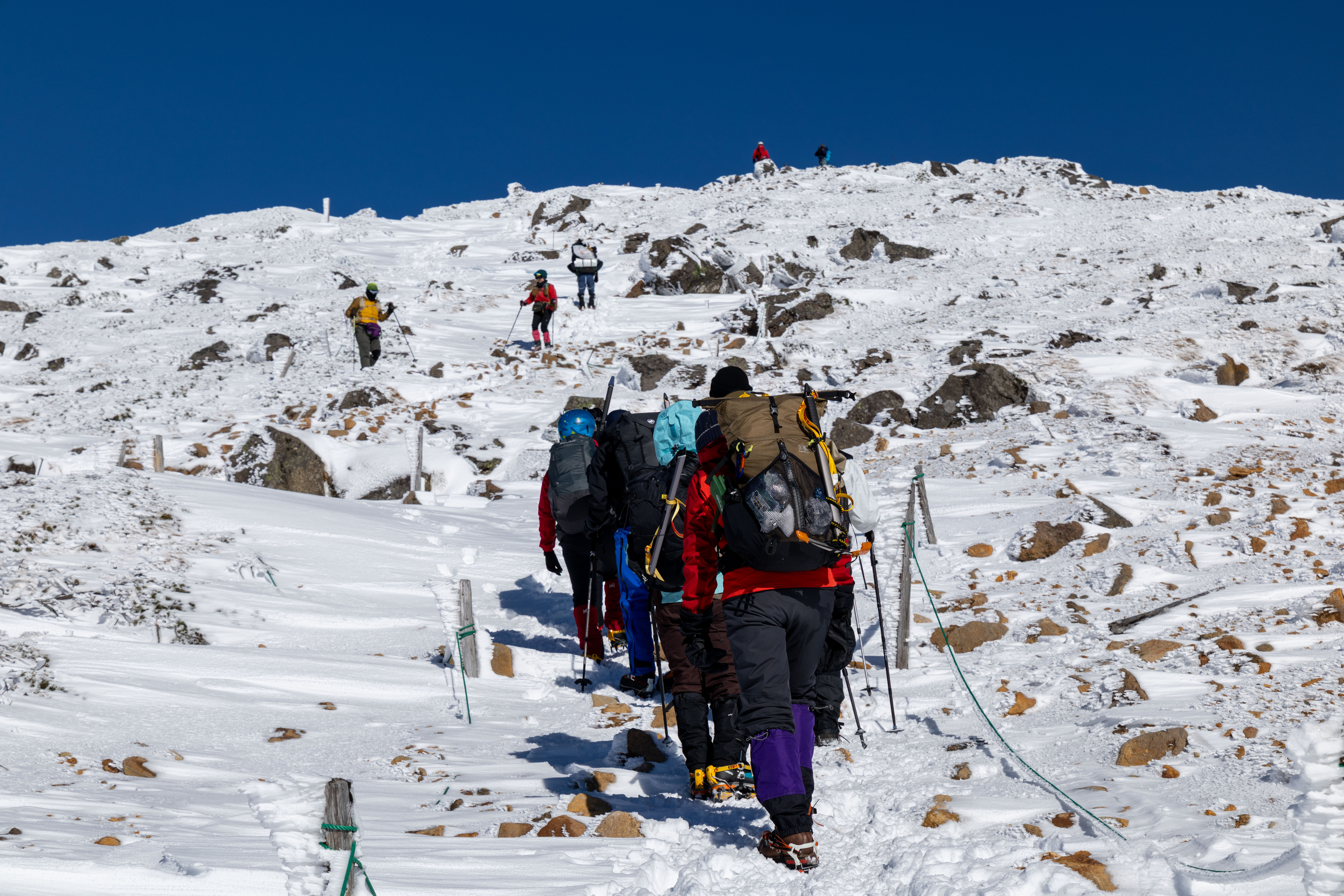 東天狗岳は八ヶ岳の雪山入門の山としても人気のため、天候の良い今日は特に多くの登山者が訪れていました。