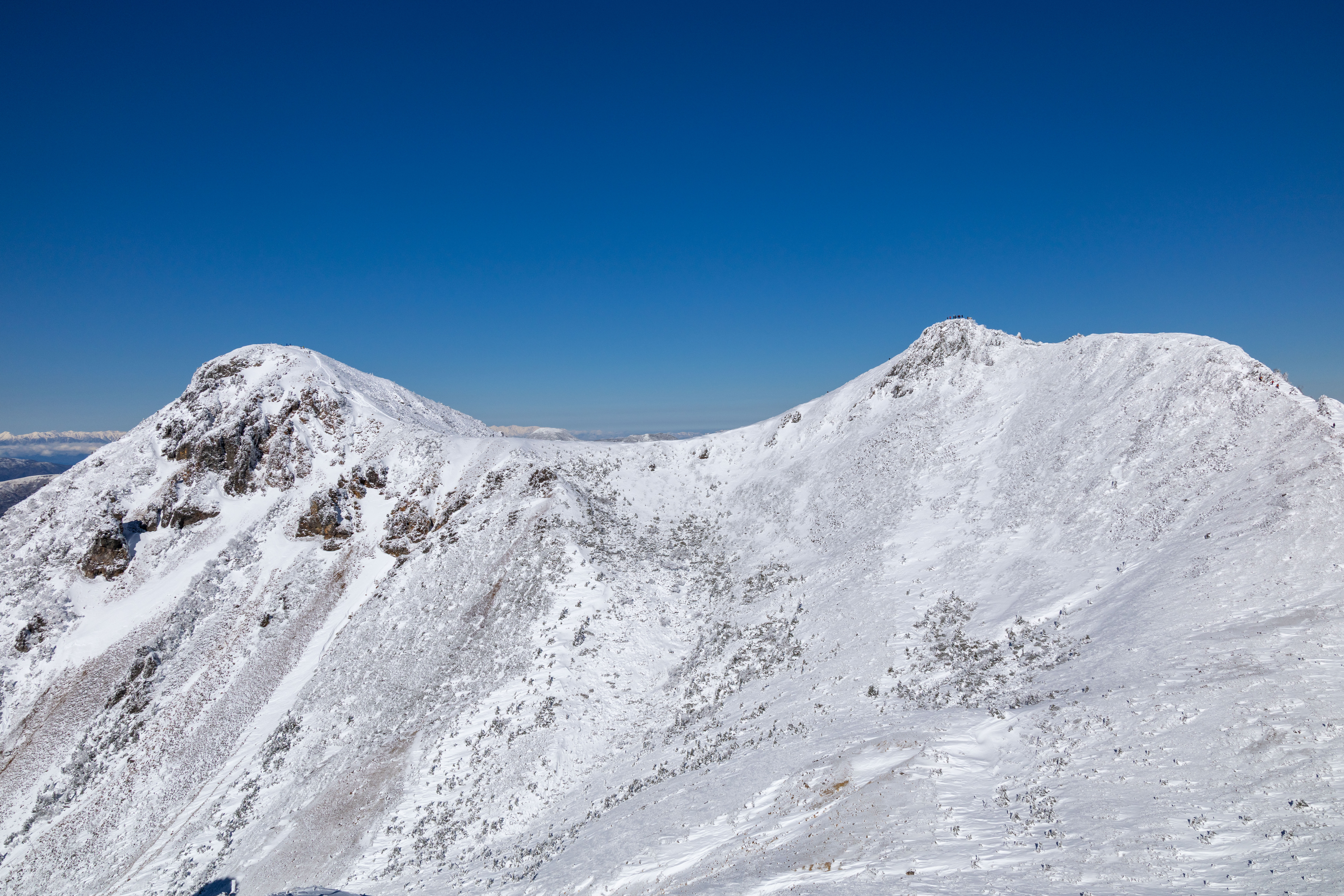 このコースは何度か行っていますが、根石岳山荘から東天狗岳までのところが強風で雪が降っているとホワイトアウトすることもあり、行けるかどうか当日まで心配していましたが、二日間とも晴天で東天狗岳でもあまり風がなく、過去最高の天候だったと思います。
