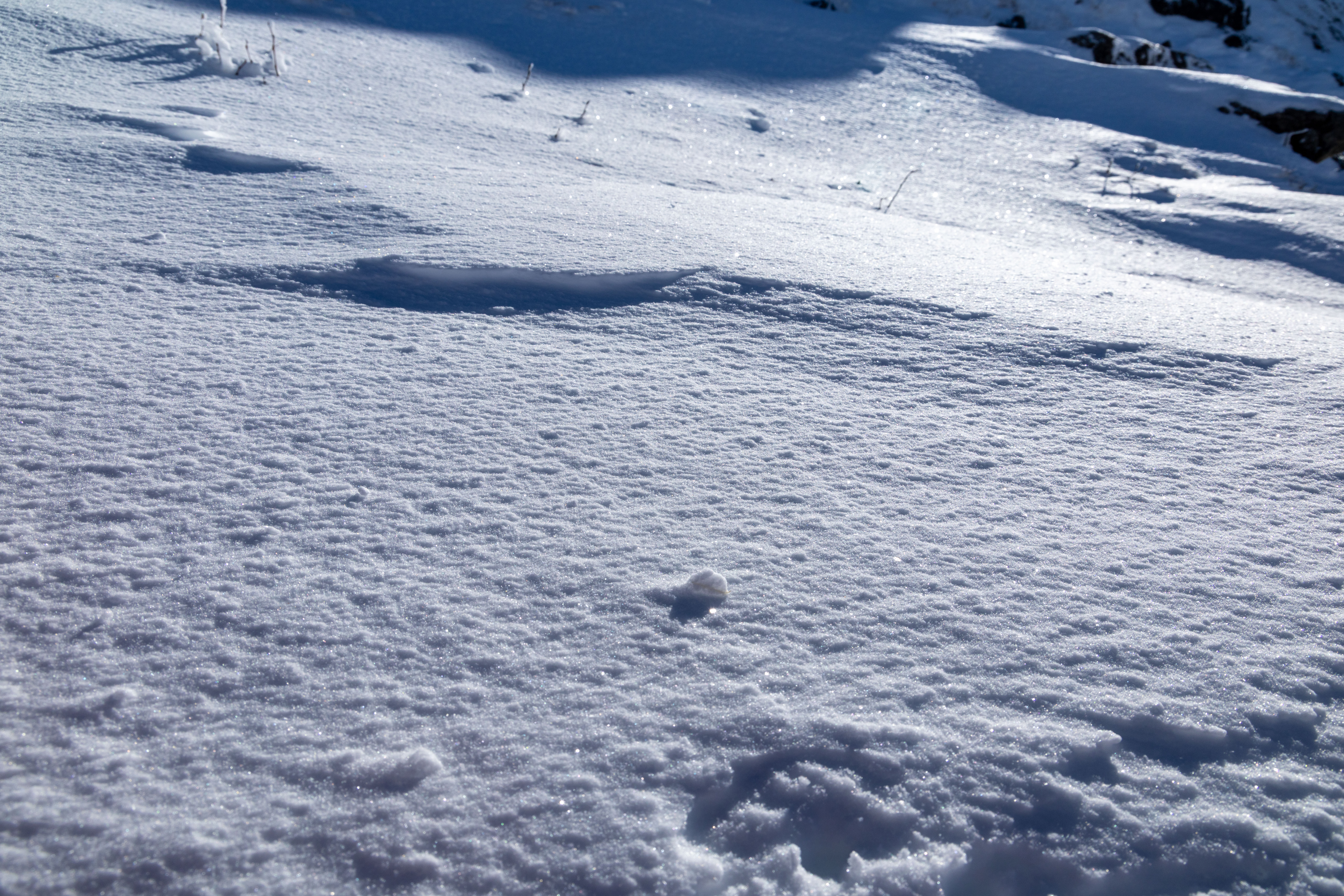 この少し上で雪に埋もれたトロッコの線路跡が少し見えていました。